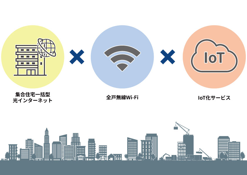 集合住宅の光インターネット回線導入に必要な「ネットワーク設計・施工」や「光回線・プロバイダーサービスの供給」、「カスタマーサポート」まで、当社のノウハウを活かしワンストップで提供します。